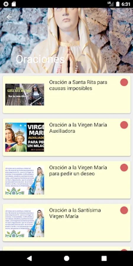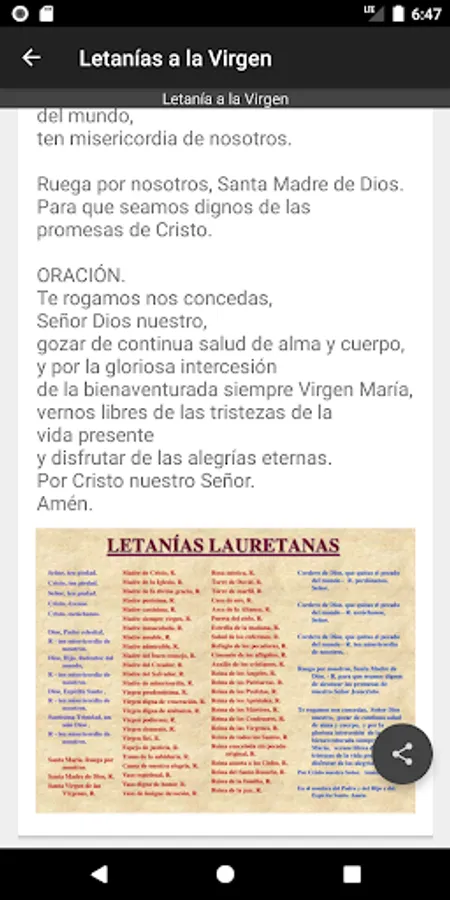 As an extra we have added miraculous prayers to the Virgin of Fatima, the Virgin of Lourdes, the Holy Spirit or Mary Help of Christians among many others for the protection of yours, having health and prosperity. It also contains litanies to the Virgin Mary. All this with the best audios and videos.