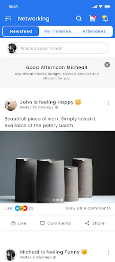 Connect with attendees by simply messaging them. Share attachments and media documents before and after events.