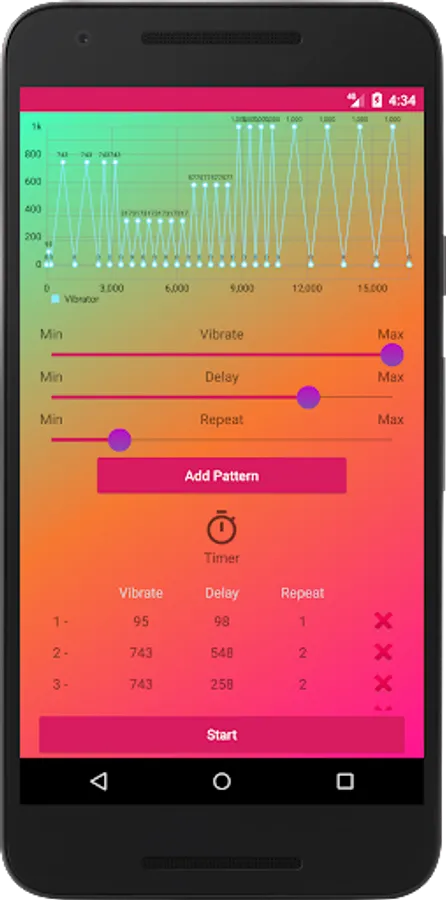 Vibrator app has 3 modes for vibration: