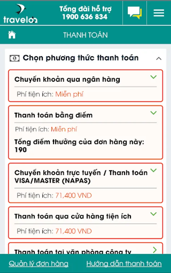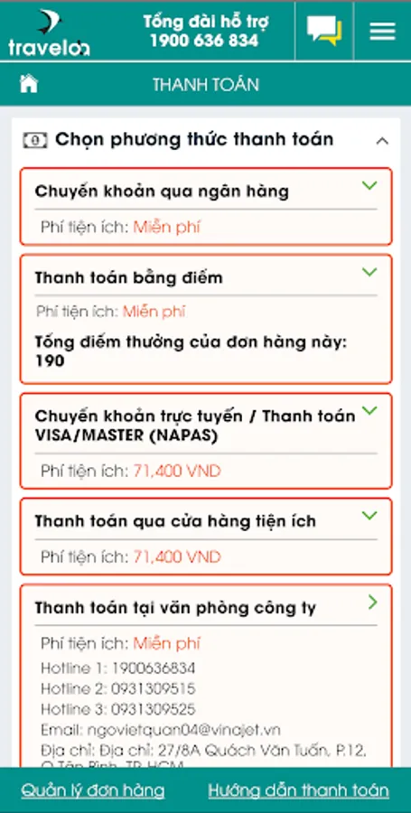 Cheap booking at TravelOla app is integrated with all the most modern payment methods in 2020, helping customers owning air tickets the easiest way.