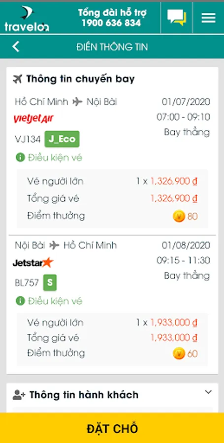 + Processing speed for booking Bamboo Airways, Vietjet Air, Vasco, Jetstar Pacific, Vinpearl Air, Vietnam Airlines, Pacific Airlines.