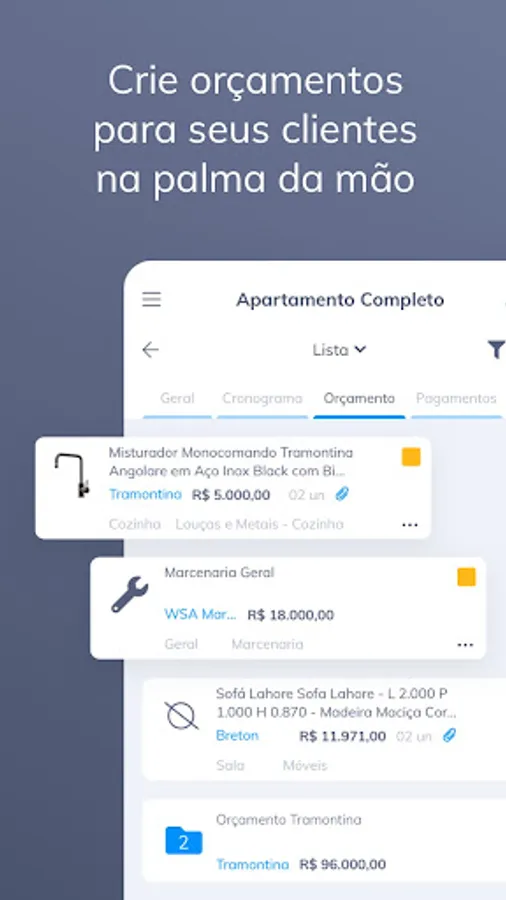 Through our platform, you can manage projects from start to finish, collaborate with your clients, plan, create budgets and make purchases or payments to suppliers, all in one place.