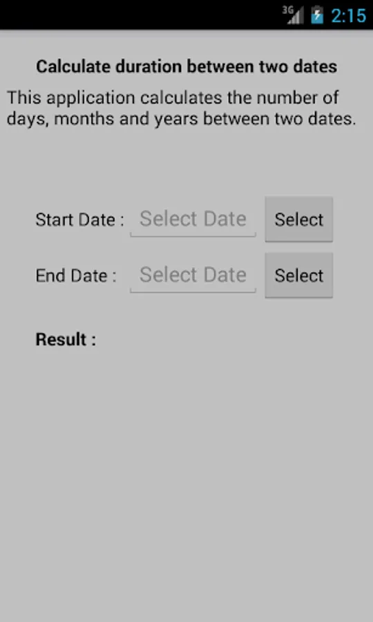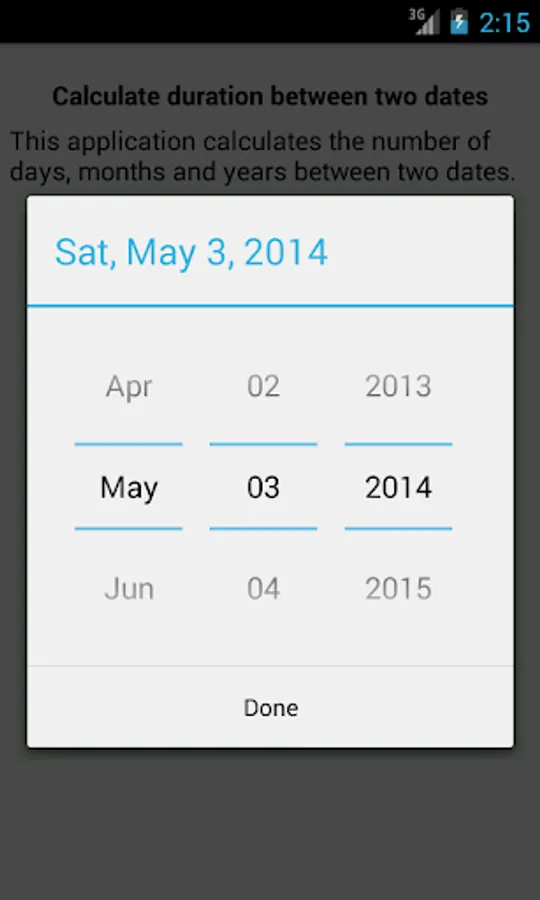 This application provides a date calculator to help you find the difference between any two calendar dates. Simply select the start and end date to calculate the duration of any event. This application will display the number of days, months and years between two dates.