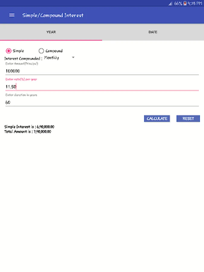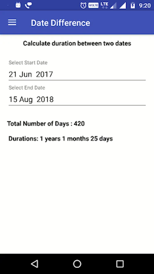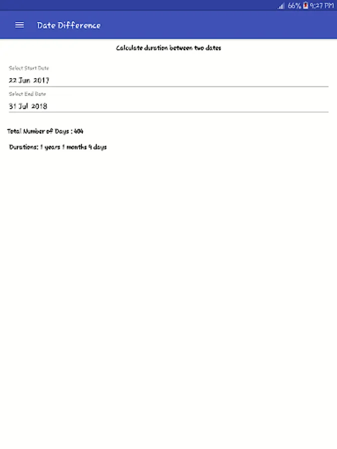 Android 3.0 or later version: The user can give time in years or can selects dates.