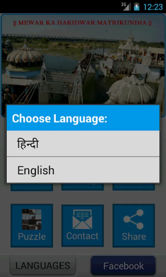 8. User can choose language : Hindi or English.