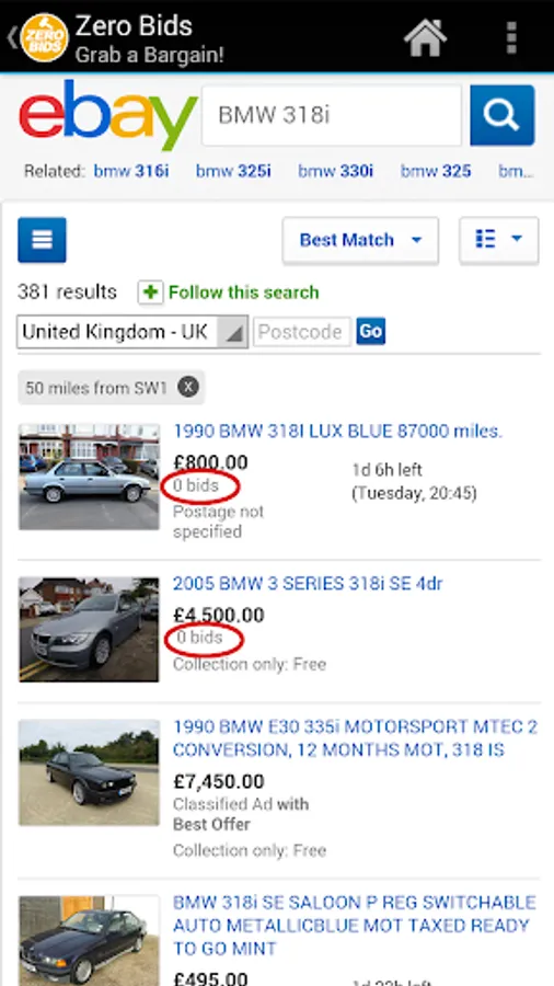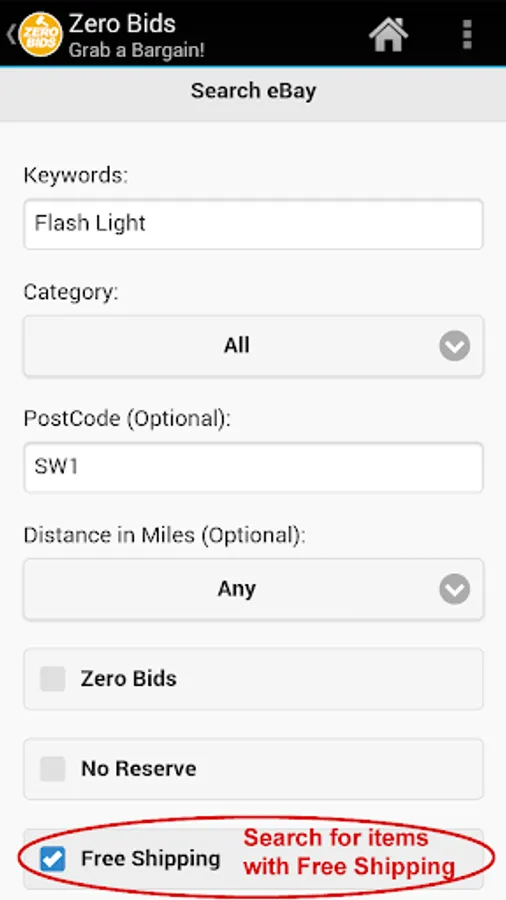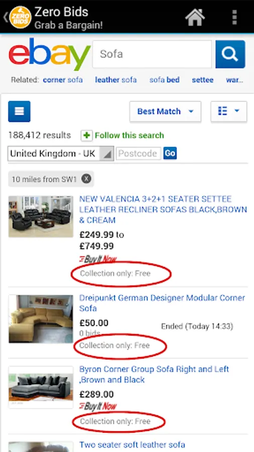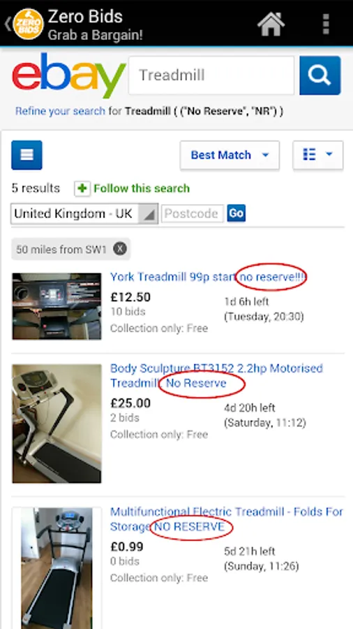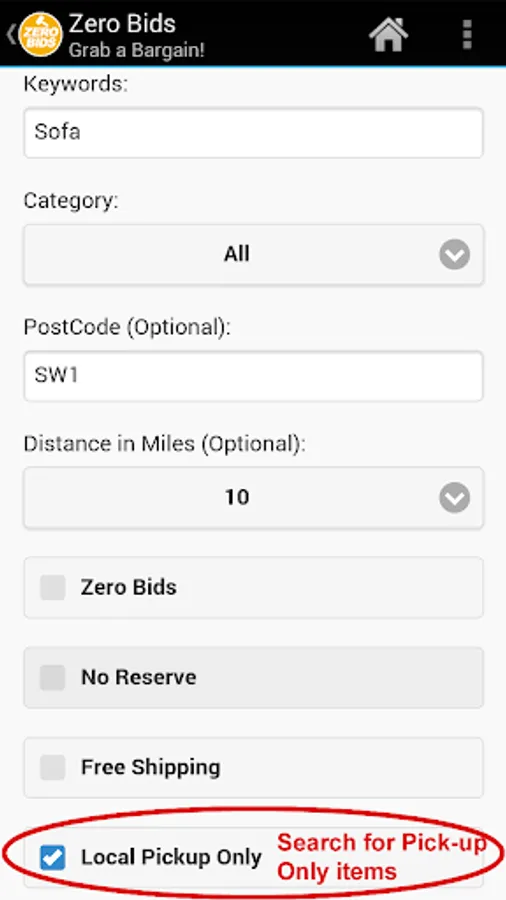 Search for such as sofas, Xboxes or HD-TVs which sellers often specify as must be collected in person. As this often means fewer bids, there are often serious bargains to be had. You can also search for 0 bid and no reserve items to grab a bargain.