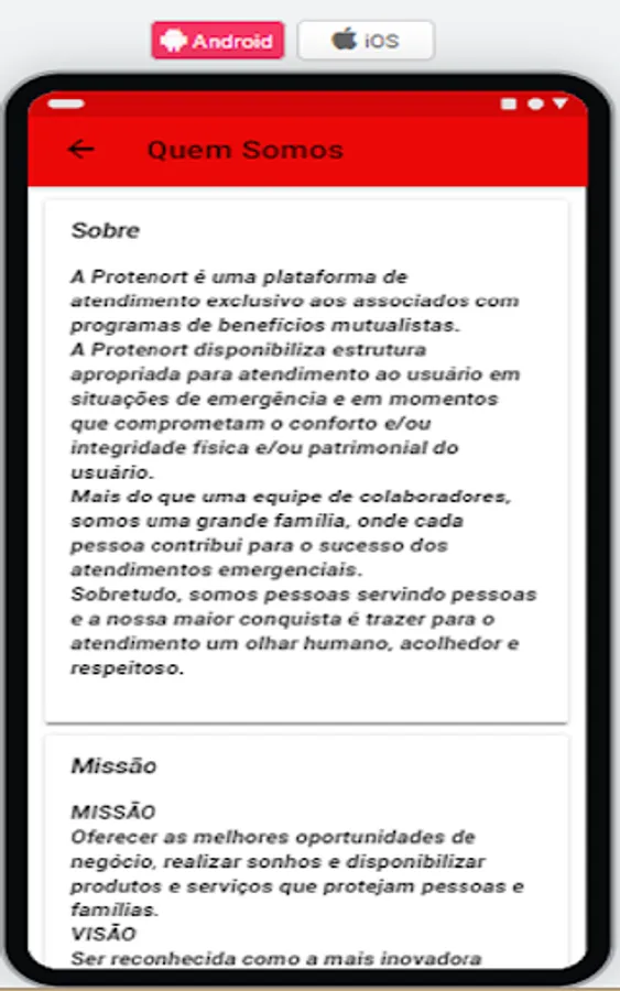 Protenort provides an appropriate structure to assist the user in emergency situations and at times that compromise the comfort and / or physical integrity and / or patrimonial of the user.