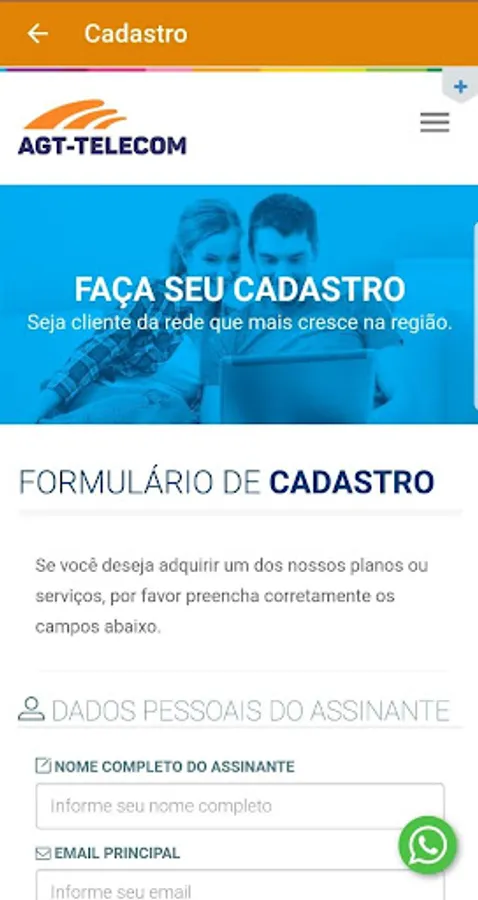 With the Application! and easy and fast, just fill in the registration data and send, after sending we will contact you to confirm the Order, Simple as that !! Come to AGT-Telecom! Innovative company in the telecommunications area.