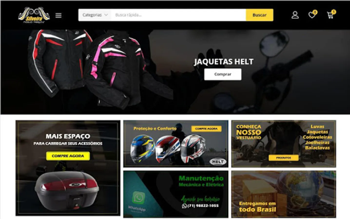 - Guaranteed delivery: Receive your purchases without leaving your home, we ship to wherever you want throughout Brazil. With the credibility that Silveira Motos offers with over 15 years of sales in our physical stores, we now have our digital version with more than 5,000 items.