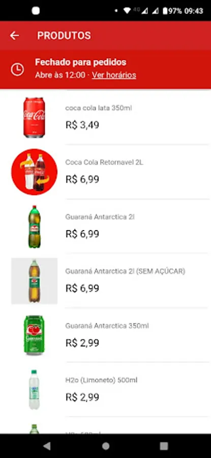 There are hundreds of products: Waters, Candies and Chocolates, Cachaças, Beers, Cocktails, Spirits, Energy Drinks, Sparkling Wines, Ice, Gins, Grocery Items, Snacks, Soft Drinks, Juices, Tequilas, Wines and much more.
