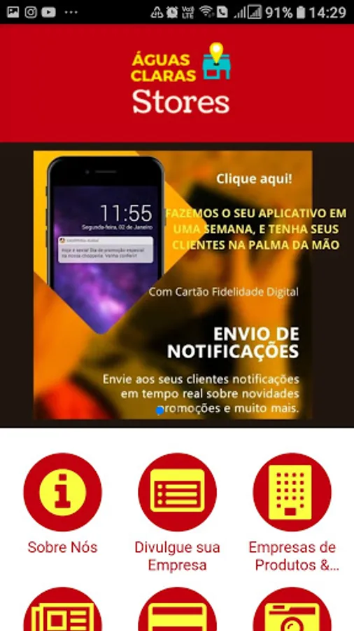 For everyone with this app, you will have practical and quick information about the trade of our Águas Claras. Soon many store promotions will be released.