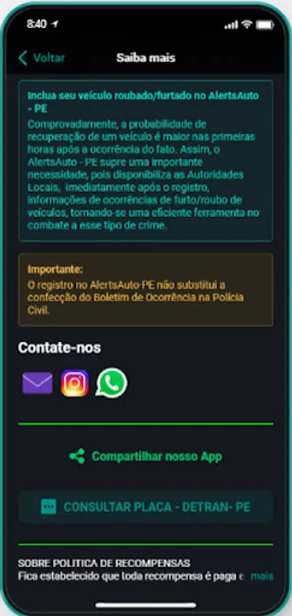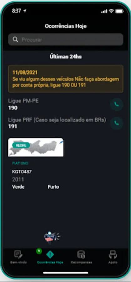 It has been proven that the probability of recovering a vehicle is greater in the first hours after the occurrence of the event. Thus, AlertsAuto fulfills an important need, as it makes available to Local Authorities, immediately after registration, information on the occurrence of vehicle theft/theft, making it an efficient tool in combating this type of crime.
