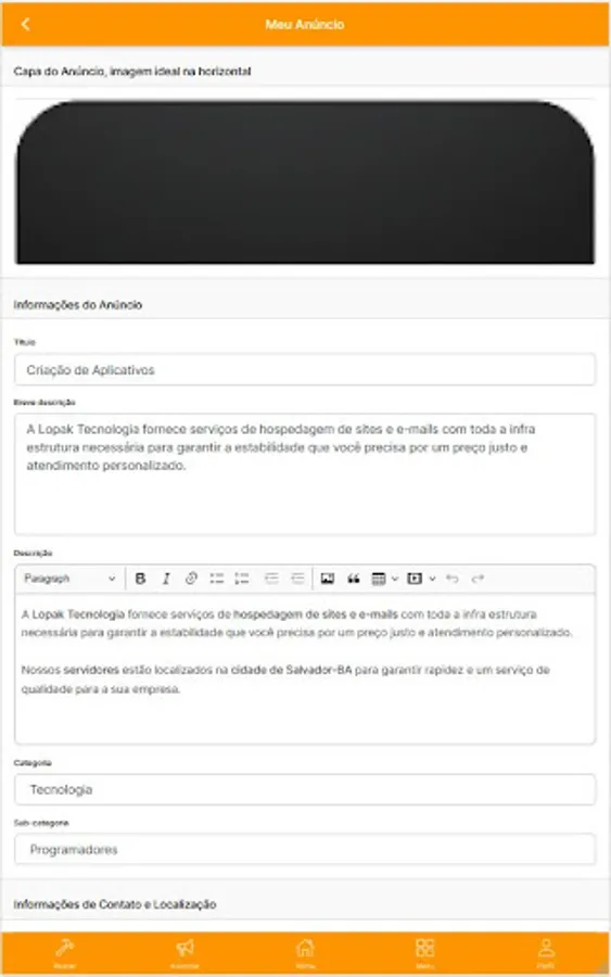 We are a company under the website and application formats, which consist of an ad network focused on the dissemination of establishments, companies, self-employed professionals and services in general. In addition, on our platform, people who are looking for job openings or even expanding their clientele have the opportunity to achieve even more visibility in the job market, counting on the constant exposure of their CVs that can be viewed by anyone who visits our digital platforms.