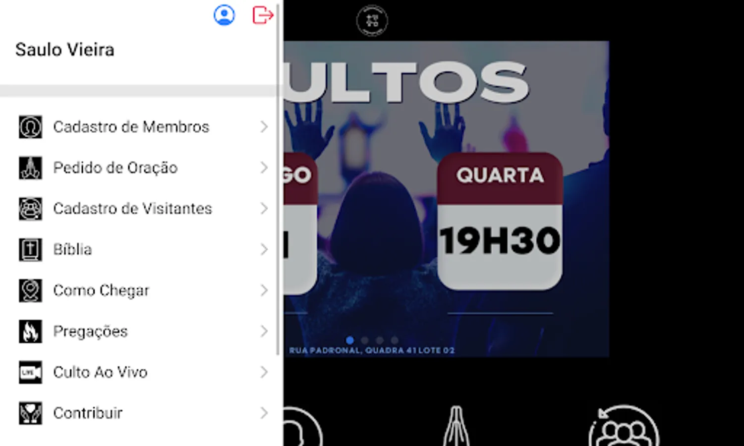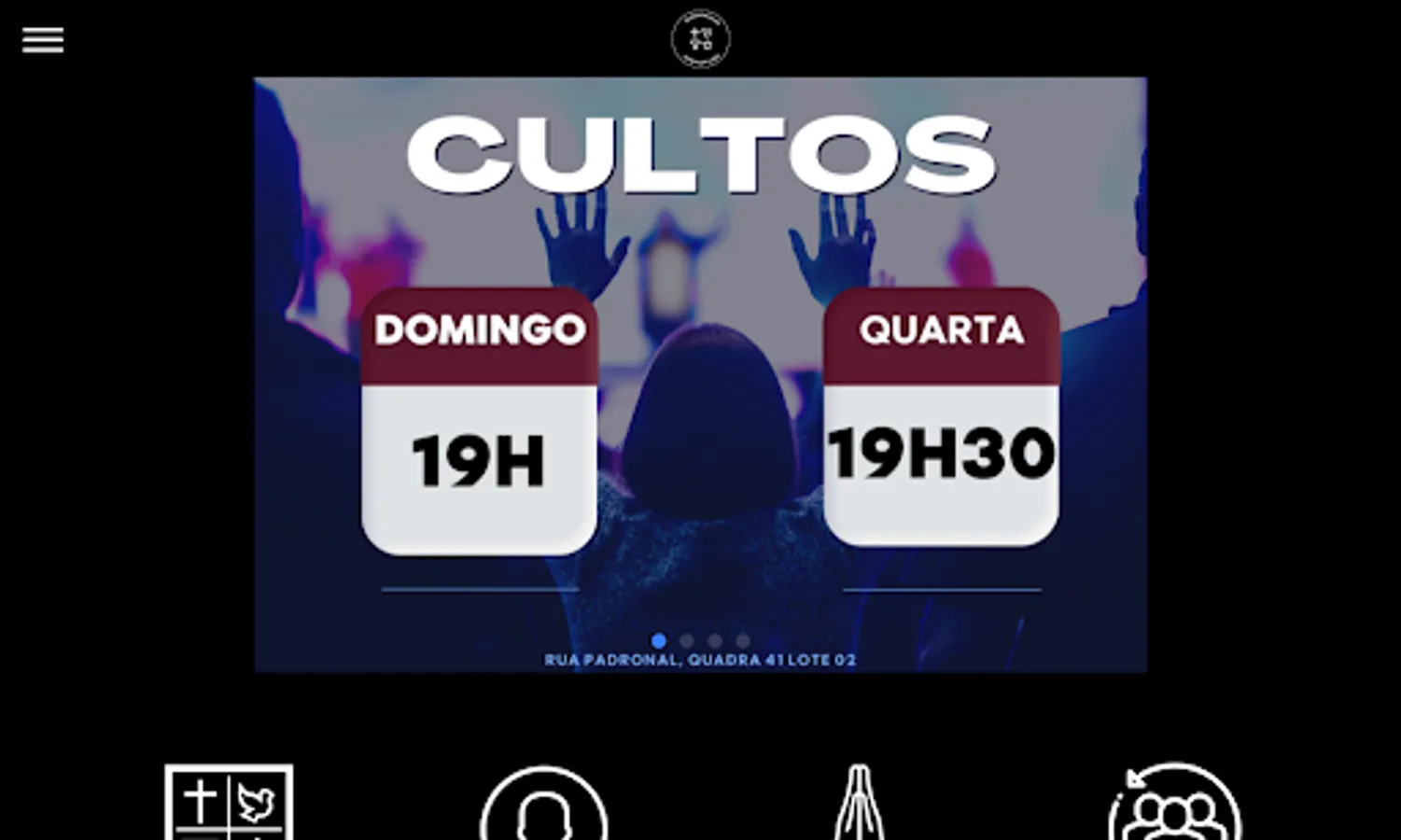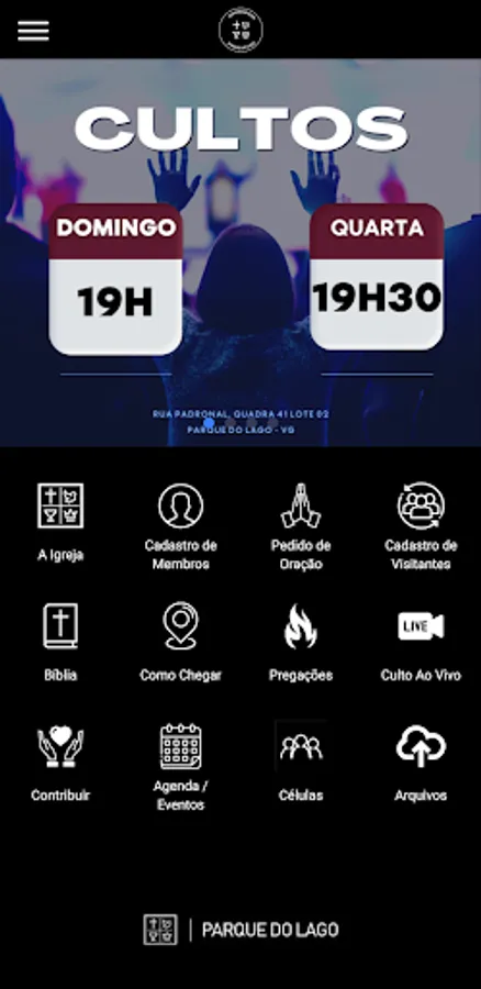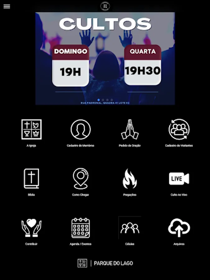 Church information, services, cells, live services, agenda and events, online bible, prayer requests.