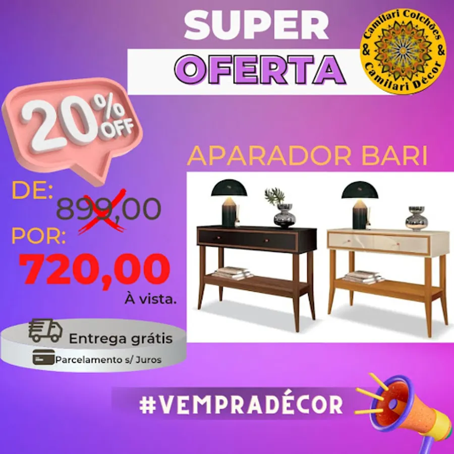 Do you like to have a fragrant and cozy home? So do we! Flowers and products for your home are indeed some of the best things we have to offer you. Camilari Decorações is driven by a single thought: transforming environments into the most pleasant places, whether through aromas, flowers, bed, bath and decorations such as curtains, pictures, rugs, religious articles, mandalas, furniture... These products are perfect as a gift and will put a smile on anyone's face. Our collaborators are always ready to serve you with excellence.