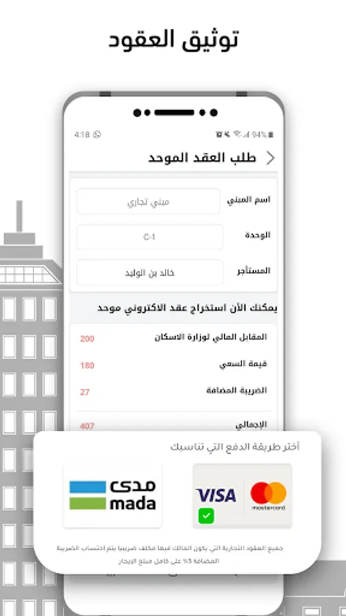 The WKD application provides you with the best solution to the problem of your paper files. Creating a unified electronic lease contract does not require more than a few minutes and provides you with absolute flexibility in terms of determining the term of the contract. The application allows you to request standard contracts, whether residential or commercial, with ease and flexibility as it provides electronic payment for these The service is at minimal and attractive prices.