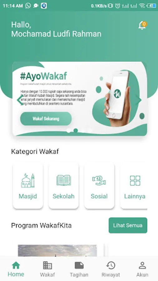 Wakafkita is operated by the Wakafkita For State Foundation which works for the well-being and prosperity of our people through a variety of #Features Project.