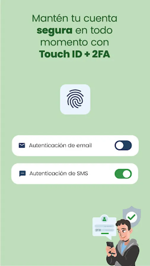 Keep your account secure at all times with Touch ID + 2FA, two-factor authentication, and quick fingerprint login