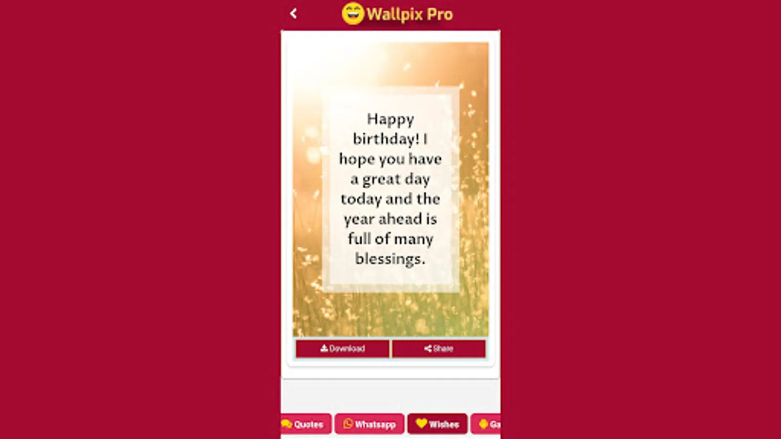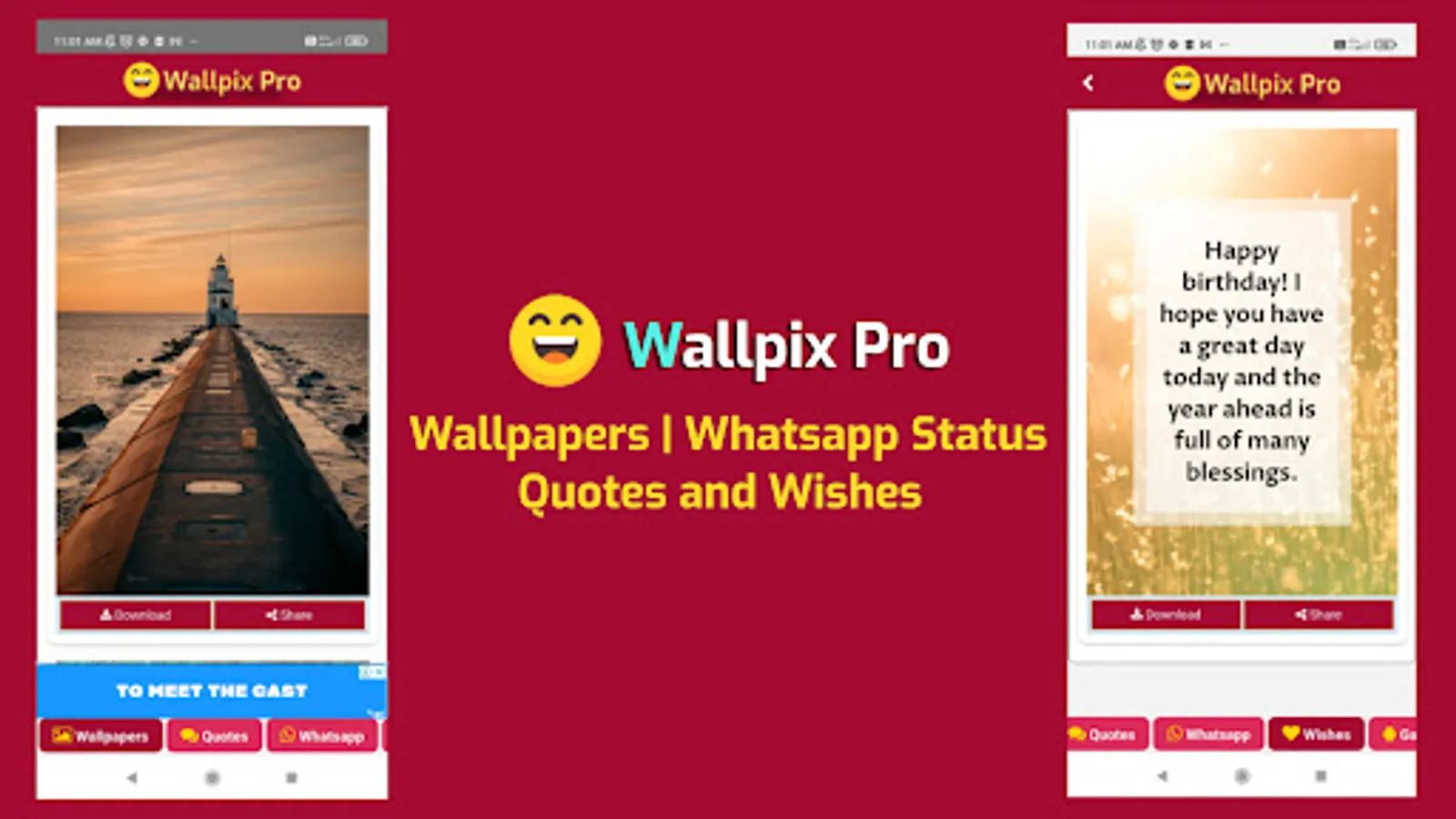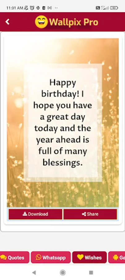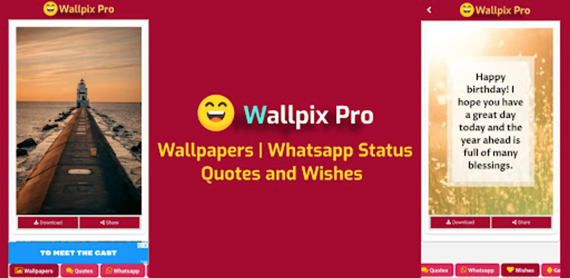 Introducing Wallpix Pro, a versatile and feature-rich application that revolutionizes the way you customize and share your mobile device experience. With an extensive collection of high-quality wallpapers, inspiring quotes, heartfelt wishes, and engaging WhatsApp statuses.