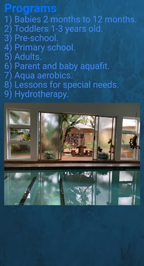 Waterbabies / Garsfontein Aquatic Centre is a modern, specific designed education centre and private practice in Garsfontein. Locally owned and directed by Jeanne-Ame Laubscher. A private practice for reflex integration, aqua sensory & physical therapy, swimming lessons, baby watersafety, aqua aerobics, hydrotherapy, sports injuries and rehabilitation.