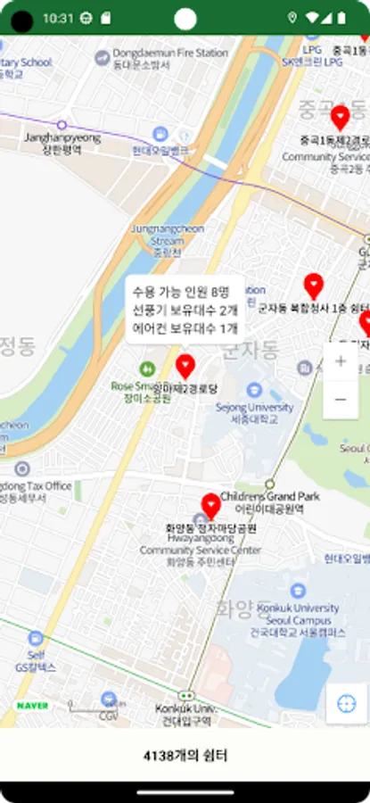 • Indicate the location of the shelter through NAVER Map API