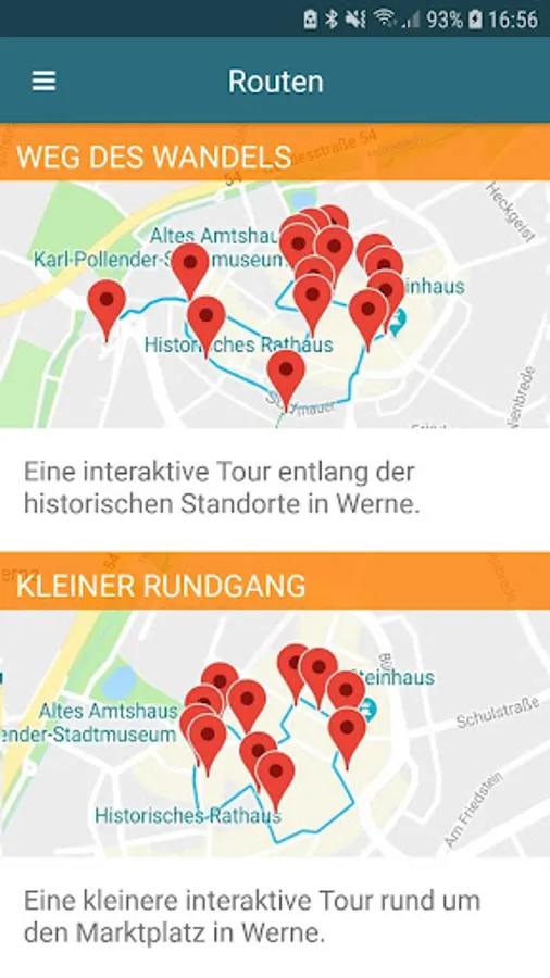 The app can be used in Werne on three different tours as well as at home to get an overview of the city, its Seneswürdigkeiten and their history.