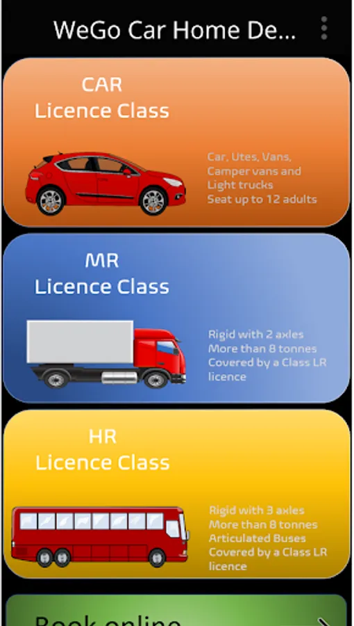 All rental clar home delivery service in Australia All kind of "C" Licence,"MR' licence, "HR" licence Class Sedan Utes.light truck, heavy Rigid truck and Bus etc