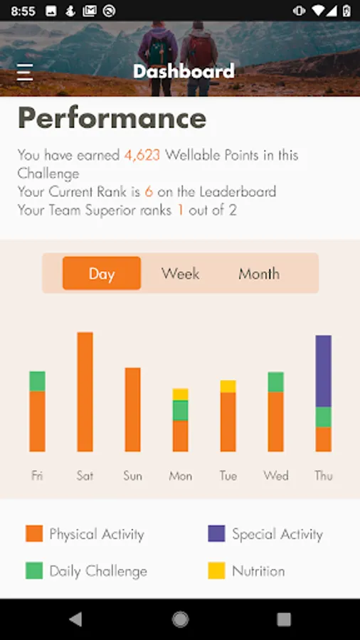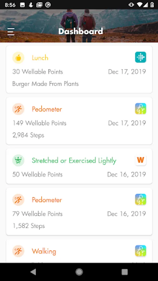 Log and earn Wellable points for workouts, daily healthy habits, and company organized events