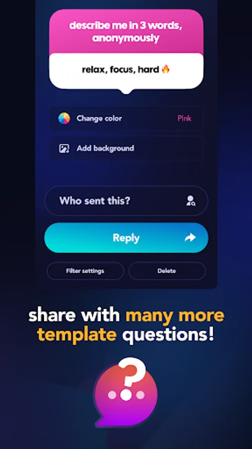 Your followers can send you questions anonymously. You can receive anonymous pictures and reply to them on your social media.