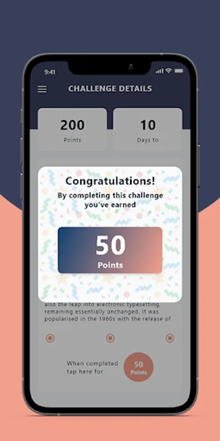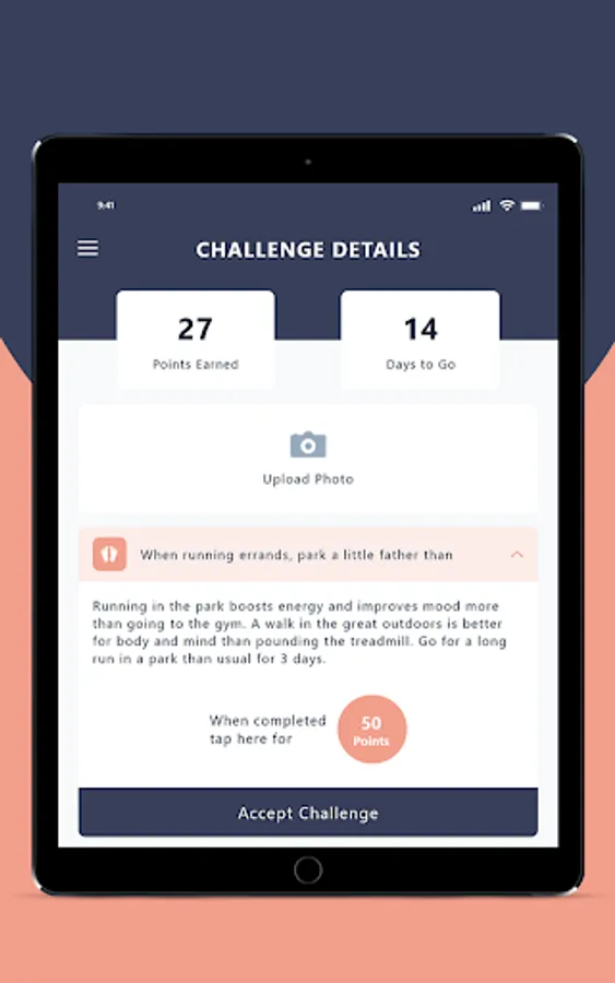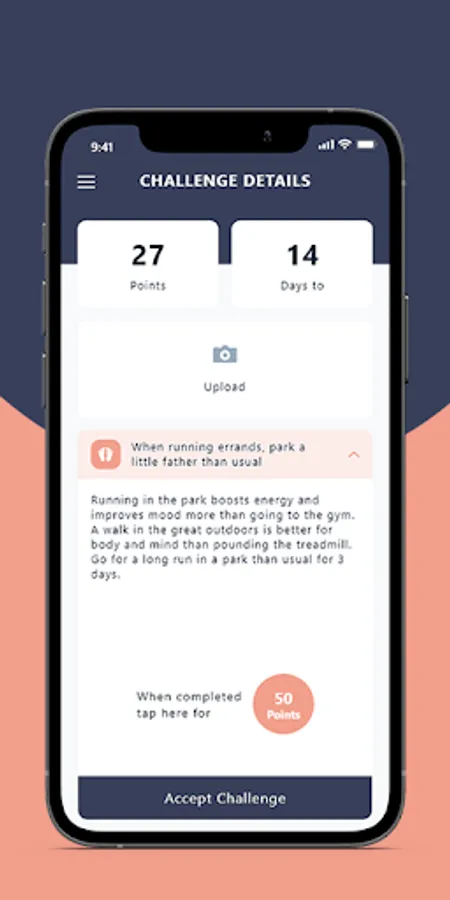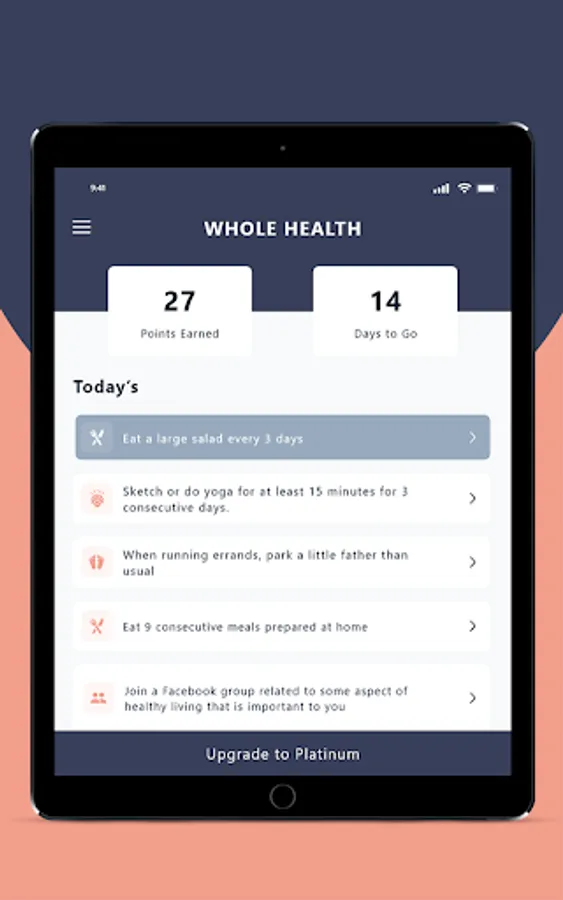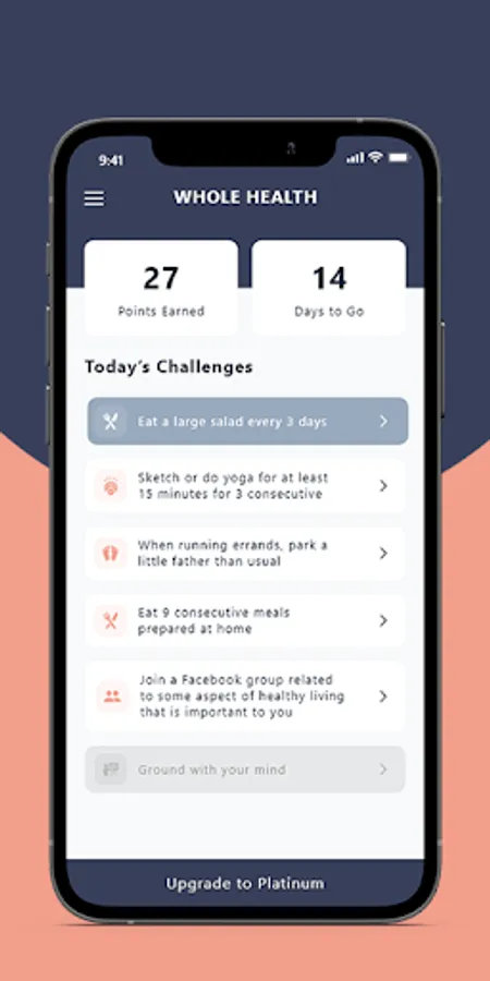 Each day you are presented with new challenges to help you change your lifestyle for the better. Choose up to 3 every day. Earn points for the challenges you complete. If you need more individual help, you can use these points for discounted personal coaching from an Emotional Eating Coach.