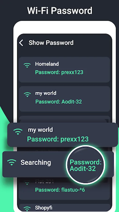 Wifi password master-show all wifi passwords Find nearby location wifi connections and you can see the passwords all of them. you can save passwords with which you can show passwords within the application. Wifi password master-show all wifi passwords will be shown in this application in which all nearby wifi are shown to the user.
