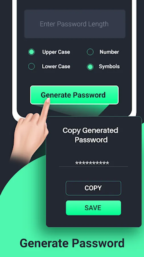 -Generate Password: You can create new passwords for your networks and accounts including choice of variety of password having numbers and symbols too.