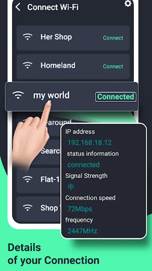 -Connect wifi: Scans for all nearby wifi connections and helps you to connect to any wifi network instantly.