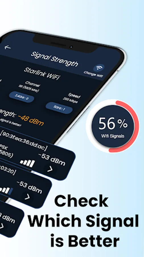Optimize wifi signal strength by examining surrounding WiFi networks with a wifi analyzer. Measure the signal strength of crowded channels with the help of a wifi analyzer. Deeply analyze your internet in detail with a wifi analyzer.