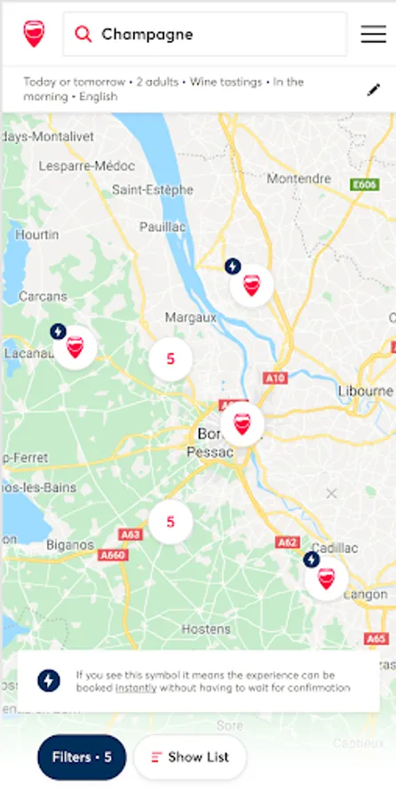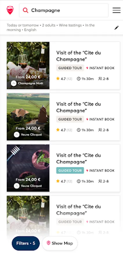 • Help with choosing: more than 10,000 customer reviews, geolocation and numerous filters (type of viticulture, type of experience, family properties or classified grand cru, type of wine produced, awarded in specialist guides, setting and architecture. .)