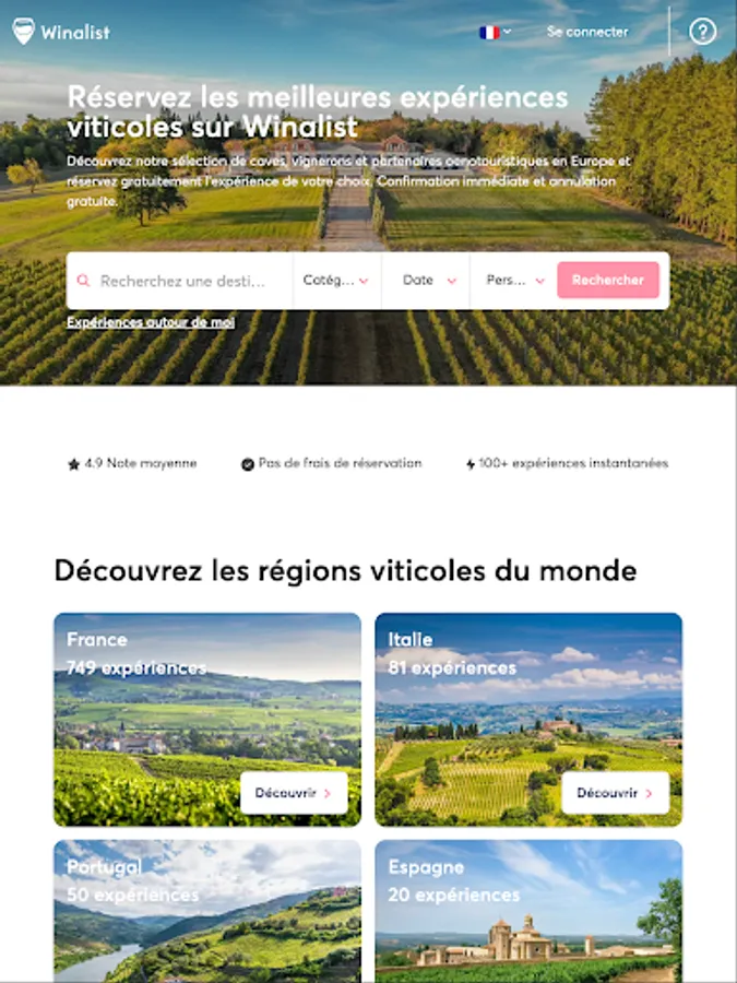 Winalist allows you to book wine experiences (tastings, visits, wine workshops, meals, etc.) in the best wine estates in France and in Europe.
