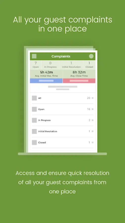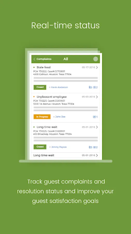 Take full lifecycle control of your entire guest complaint tracking process. Eliminate the need to use emails, spreadsheets, text messages, and phone to track guest complaints. Ensure a complaint always has an assigned owner and never falls into the black hole. Guarantee 100% complaint case resolution.