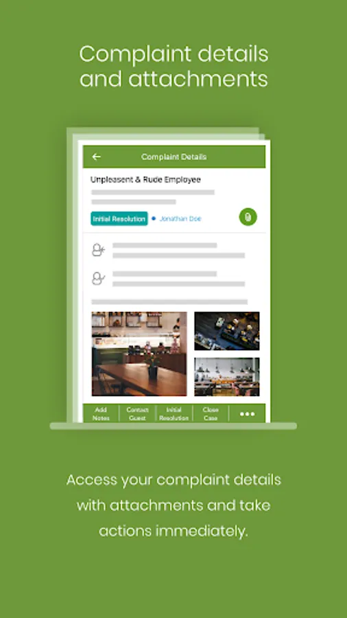 Engage owners of complaint cases right away through push notification. Get the right owners in your organization engaged and working on their complaints with full insight into the status of each case. Drive staff to resolve guest complaints quickly. Internal communication channel keeps the management informed.