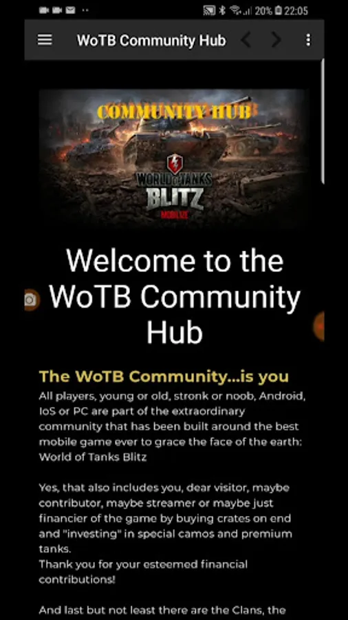 WoTB Community Hub is an application for the game WoT Blitz.