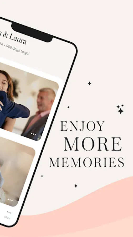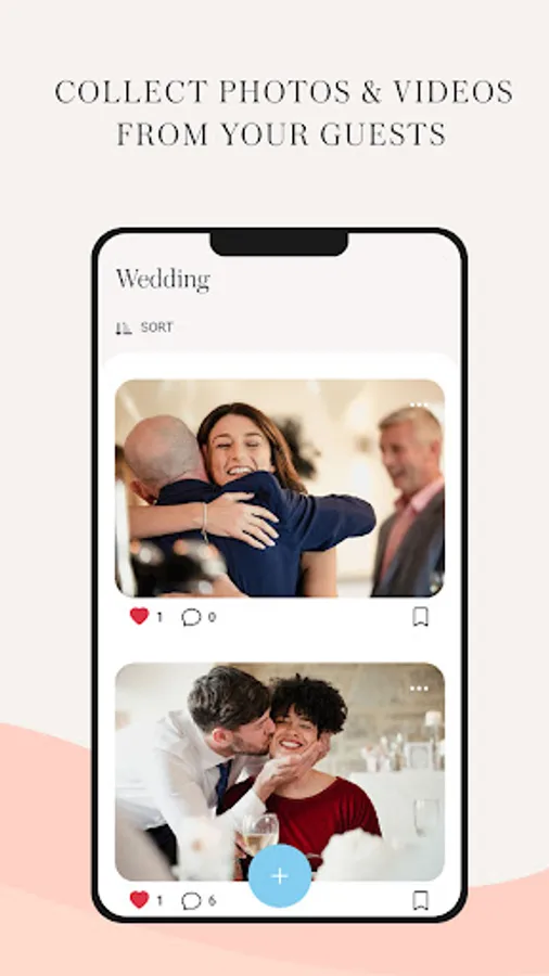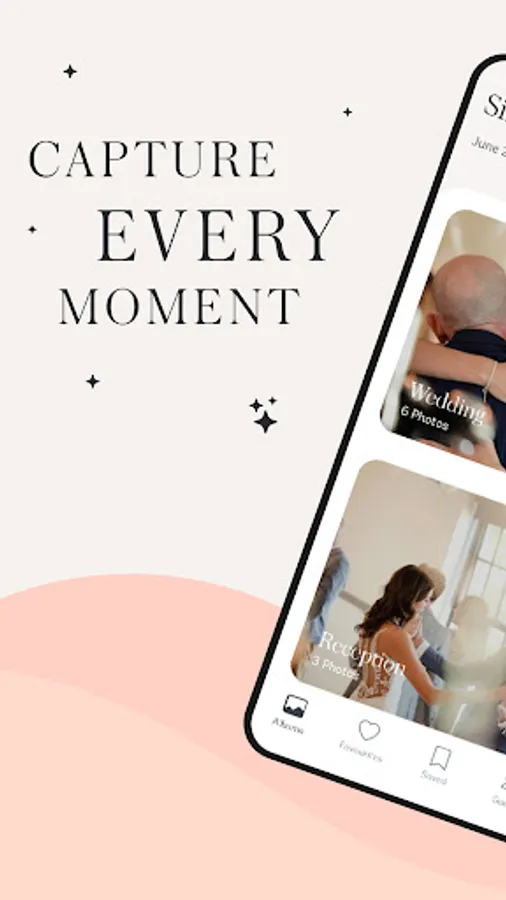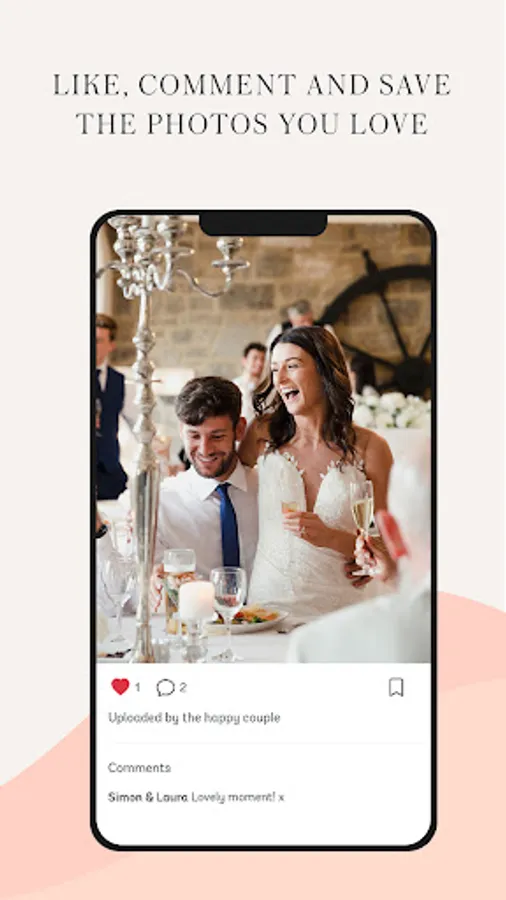 Create your own personalised space for your guests to add photos. You can add an unlimited number of albums for each part of your wedding, you could even try out the app for your hen or stag do!