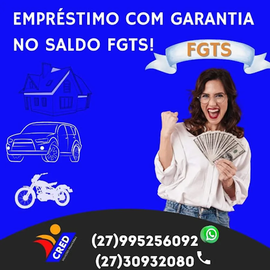 The credit you need, with the use of payroll, fgts, vehicle or property guarantee. In addition, with up to 45 days to start paying and up to 96 installments.