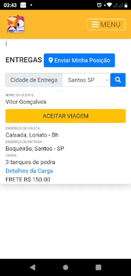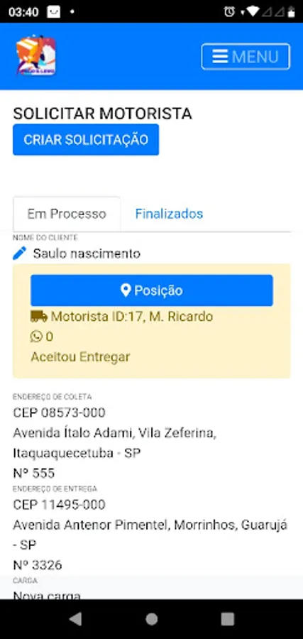Hello We are Pego & Levo - Your daily delivery APP. We deliver all kinds of goods, personal items or your PET, we know the difficulty that some PET breeders face when they want to send a pet to a new family, so we are here to help. After registering your order, it will be available in our APP, the driver in turn will have access to your order in our APP, so he will contact you to arrange the delivery details. You can also count on our real-time tracking service, bringing more security to you. The Pego e Levo team thanks you for your trust.