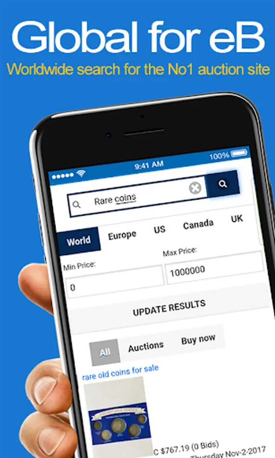 Easily perform Global Searches on eBay with JUST 1 CLlCK! Search all EB sites at once or filter by country. A must have tool for eBay buyers and sellers. Find awesome deals worldwide.