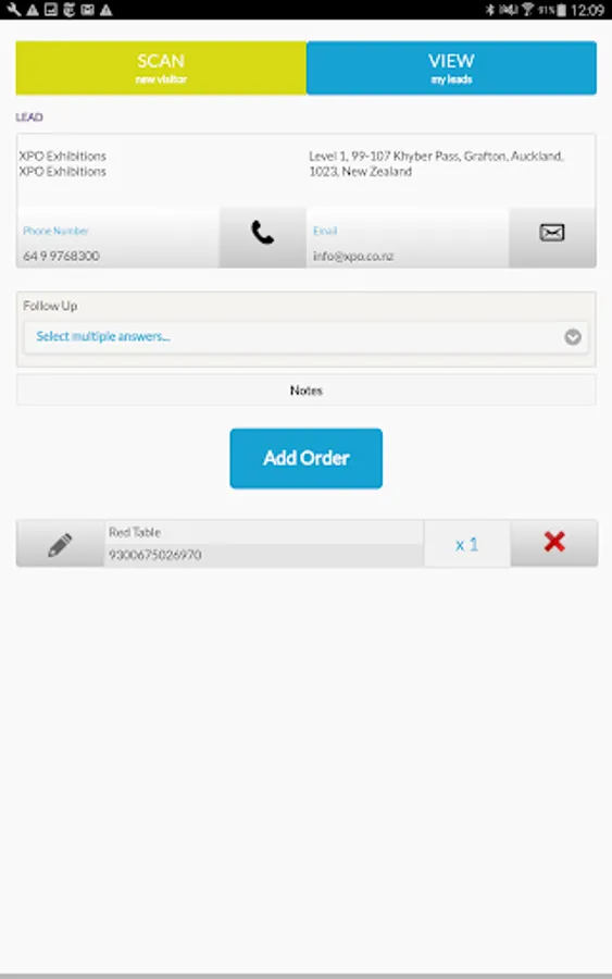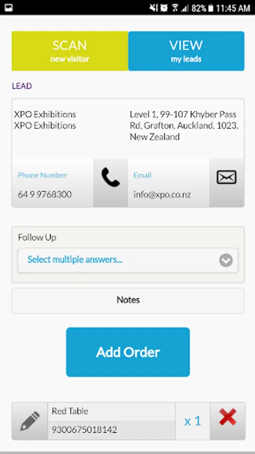 During and post event, log in to your XPO leads web interface and export all of your data in a handy excel file complete with prospect names, contact details and orders along with reporting on who scanned the contact.