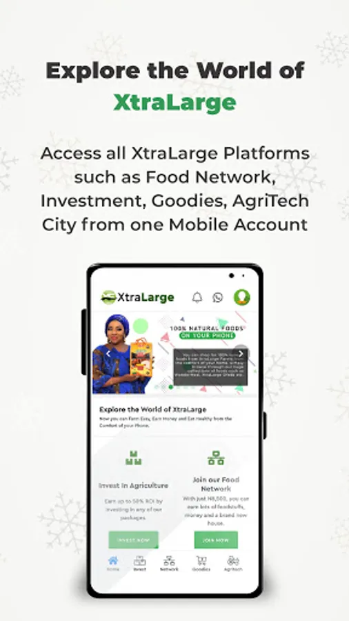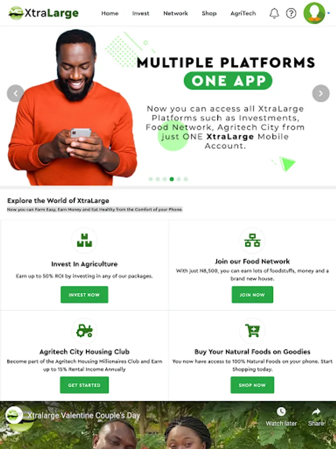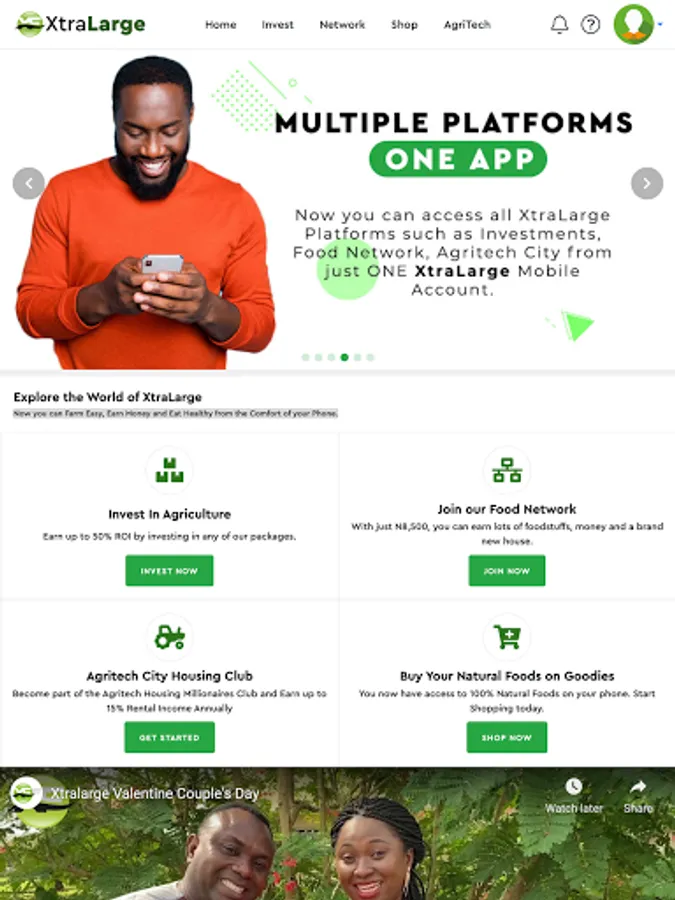 You can now access all of XtraLarge Platforms such as Investments, Food Network, Goodies, AgriTech City from one single Mobile Accounts.