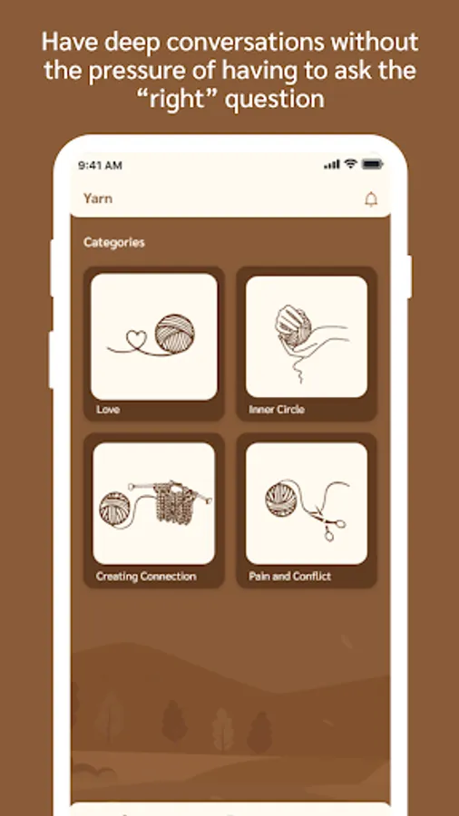 Our app offers a wide range of categories, from love and friendship to family and self-reflection, each with carefully crafted question prompts designed to inspire meaningful conversations. With Yarn, you can say goodbye to awkward silences and surface-level chitchat and dive straight into the heart of the matter.