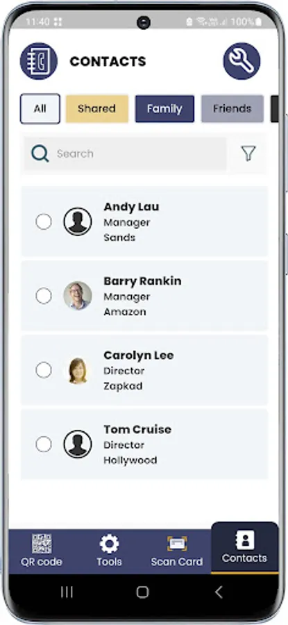 With a single tap on the phone, you can share your contact details, social links, photos and videos or use our Radar to search for people in your vicinity to exchange cards. You can digitize the paper cards you receive by scanning them using Optical Character Recognition and access them from the cloud 24/7.