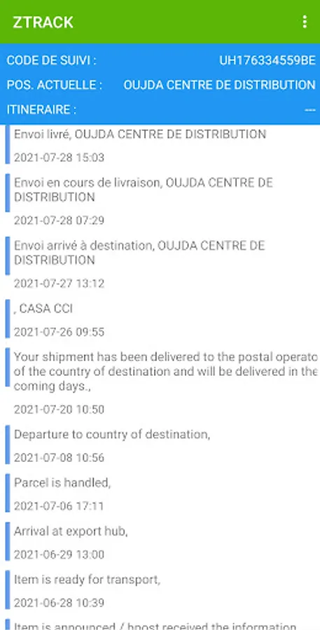 ZTRACK SUIVI DE COLIS INTERNAT Screenshots