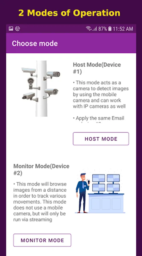 2) Monitor Mode: The second device will act as a monitor to view streaming from a distance.