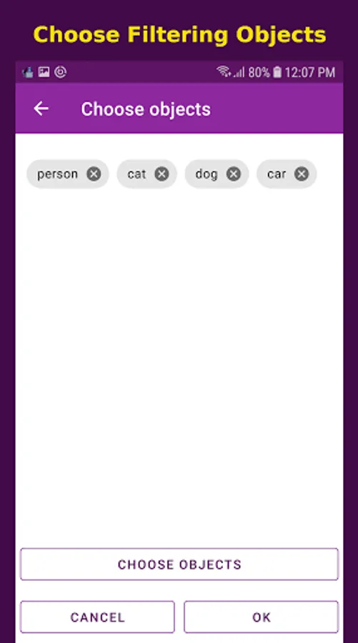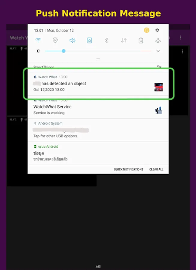 - Be selectable to detect objects such as people, dogs, cats, cars and then alert to the device that can see information from a distance without having to wait and see the screen all the time by using the device's notification screen.